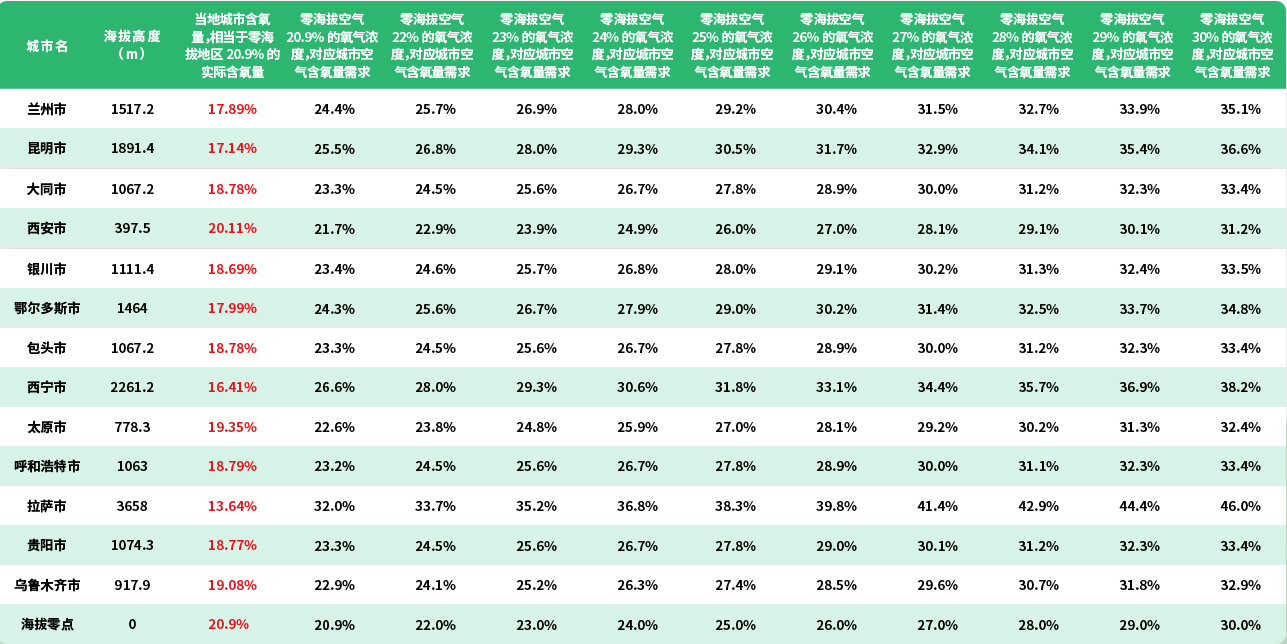 不同地區(qū)不同氧氣含量計(jì)算公式